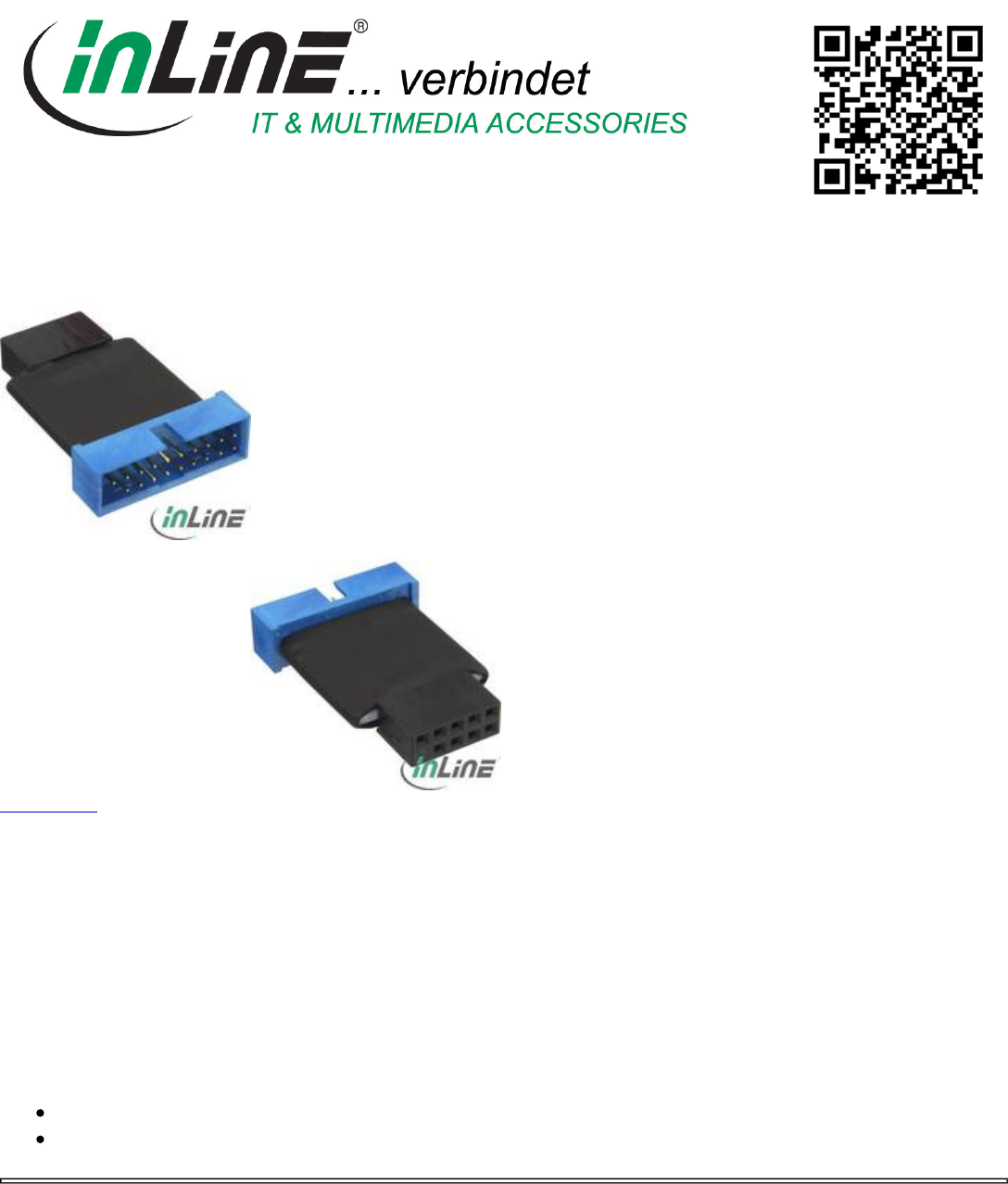 InLine® USB 2.0 to 3.0 adaptor internal, USB 2.0 mainboard to USB