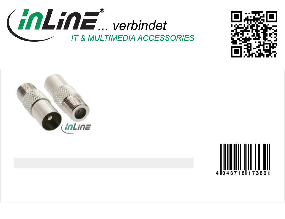 Coaxial adapter, InLine®, IEC-plug male (antenna) to F-plug female, 100pcs. pack bulk