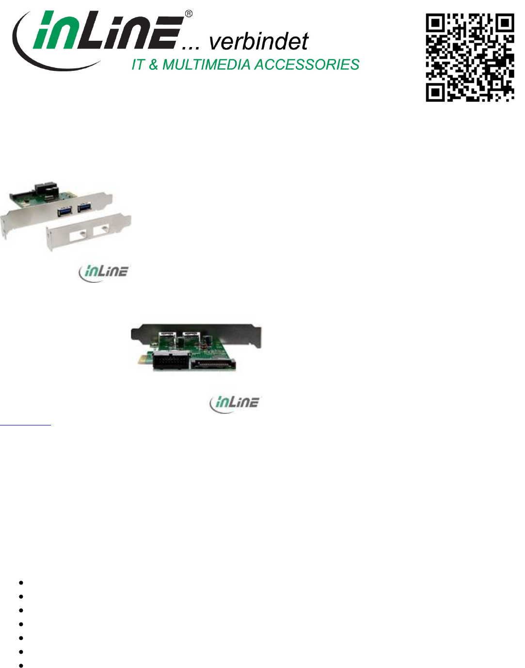 InLine® I/O Card 4x USB 3.0 (2-External port + Dual Port Internal