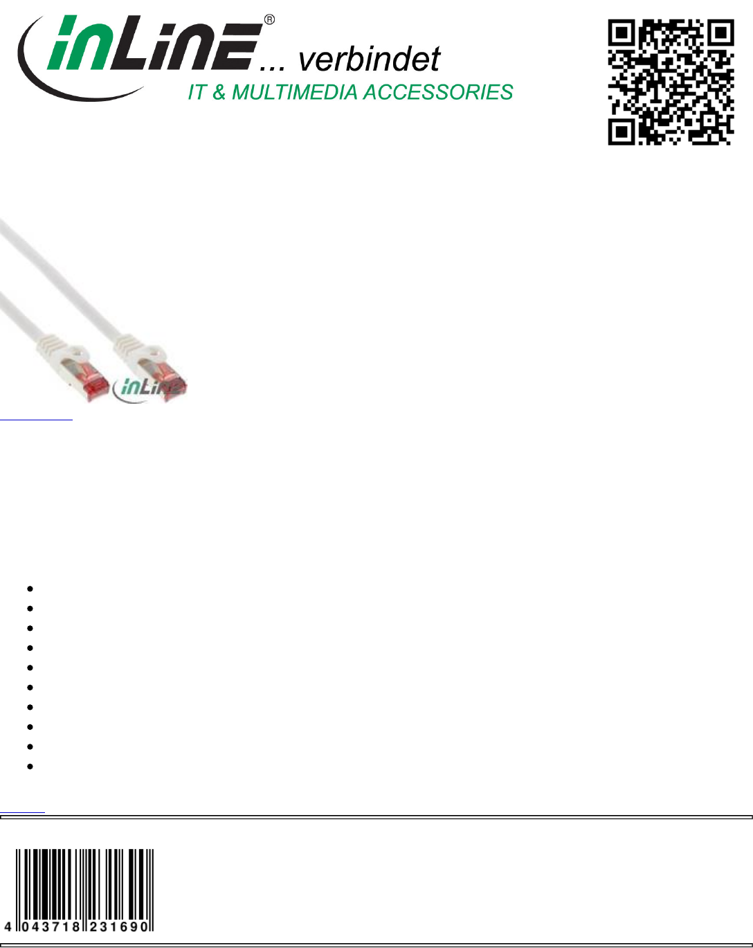 InLine® Patch cable, S/FTP (PiMf), Cat.6, 250MHz, PVC, CCA,
