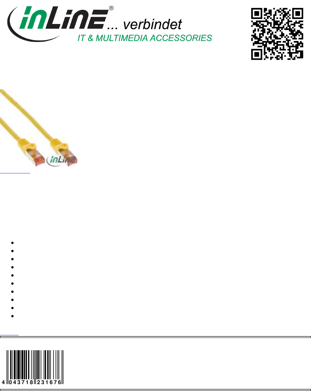 Category: Cable, Patch Cable Cat.6, Cat.6 S/FTP (Pimf)