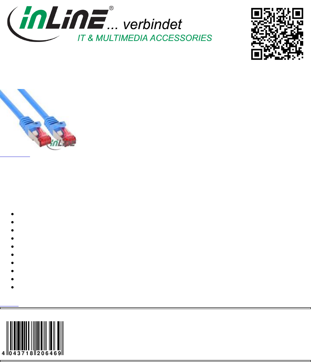 Category: Cable, Patch Cable Cat.6, Cat.6 S/FTP (Pimf)