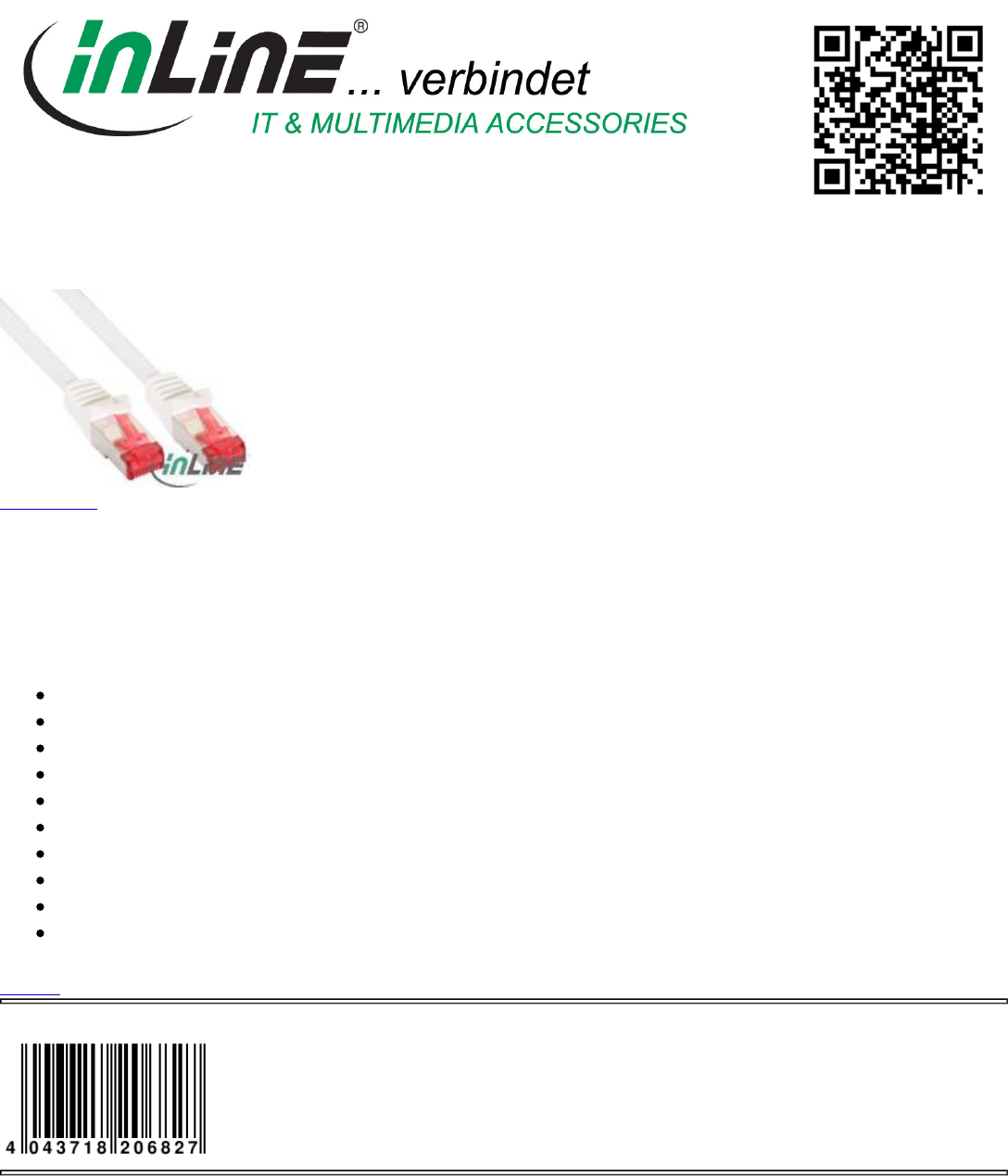 InLine® Patch cable S/FTP (PiMf), Cat.6, halogen free, white, 2m