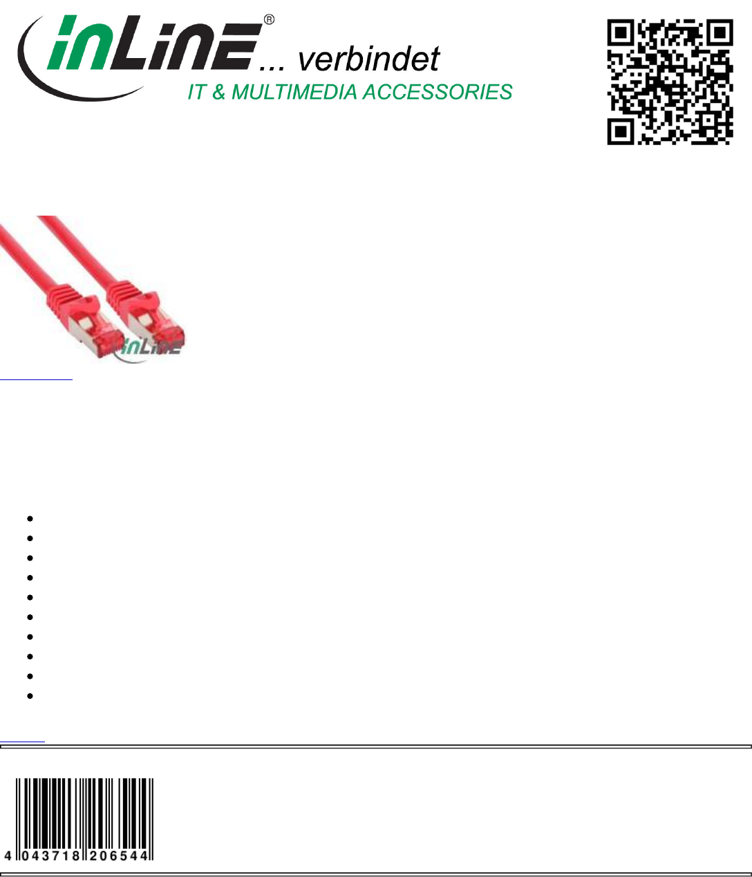 Category: Cable, Patch Cable Cat.6, Cat.6 S/FTP (Pimf)