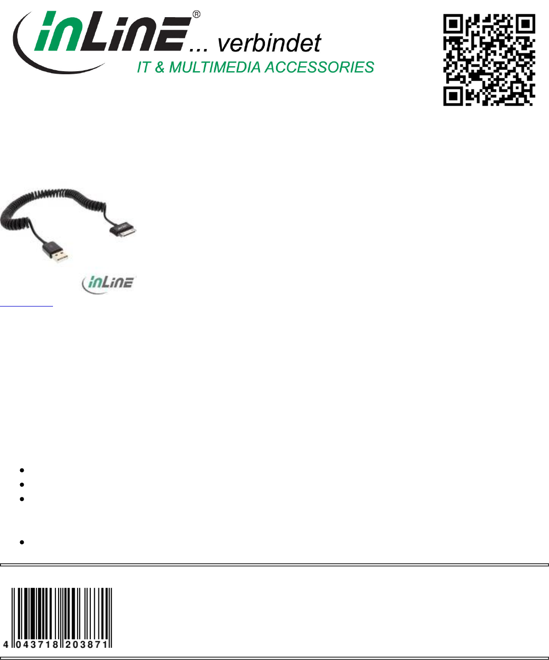 InLine® Samsung Galaxy tablet spiral cable, Samsung plug to USB A
